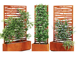 A háttérfal könnyedén hozzáadható vagy eltávolítható, és rögzíthető akár a kaspó széléhez, akár annak középvonalába – így még jobban alkalmazkodik a térhez. Ha például a fal középre kerül, a növények mindkét oldalra elhelyezhetők, így minden irányból szép látványt nyújtanak.