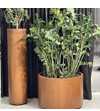 A kerek Corten kaspók nemcsak funkcionálisak, hanem stílusos hangsúlyelemként is szolgálnak a kert- és tájépítészeti megoldásokban.
