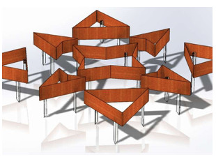 Egyedülállóan szép kompozíció, amely különálló, teljesen hegesztett elemekből áll. Az elemeket a talajra helyezzük, majd fém cövekekkel rögzítjük (a cövekeket a földbe verjük, és csavarokkal erősítjük a Corten acél elemekhez).