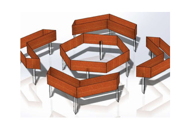 Egyedülállóan szép kompozíció, amely különálló, teljesen hegesztett elemekből áll. Az összes elemet a talajra helyezzük, és fém cövekekkel rögzítjük (a cövekeket a földbe verjük, majd csavarokkal erősítjük a Corten acél elemekhez).