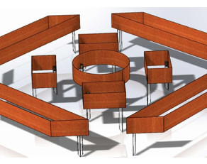 Egyedülállóan szép kompozíció, amely különálló, teljesen hegesztett elemekből áll. Az összes elemet a talajra helyezzük, majd fém cövekekkel rögzítjük (a cövekeket a földbe verjük, és csavarokkal erősítjük a Corten acél elemekhez).