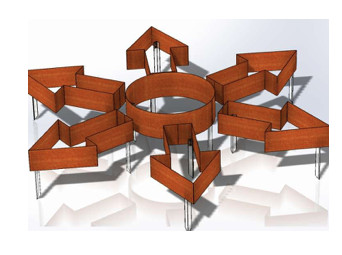Egyedülállóan szép kompozíció, amely különálló, teljesen hegesztett elemekből áll. Az összes elemet a talajra helyezzük, és fém cövekekkel rögzítjük (a cövekeket a földbe verjük, majd csavarokkal erősítjük a Corten acél elemekhez).