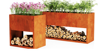 A tűzifatartós téglalap alakú kaspók praktikus és esztétikus megoldást kínálnak.